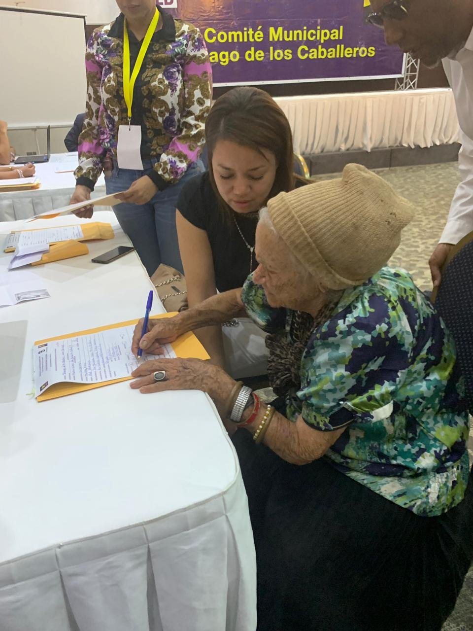 Hoy Noticias/Santiago,R.D.-Doña Patria Núñez, de 86 años de edad, le pidió a alcalde Abel Martínez, que en nombre del pueblo de Santiago, quería inscribirle su candidatura, ante la comisión electoral del Partido de la Liberación Dominicana (PLD), el alcalde las complació y dijo que era un verdadero honor para él.