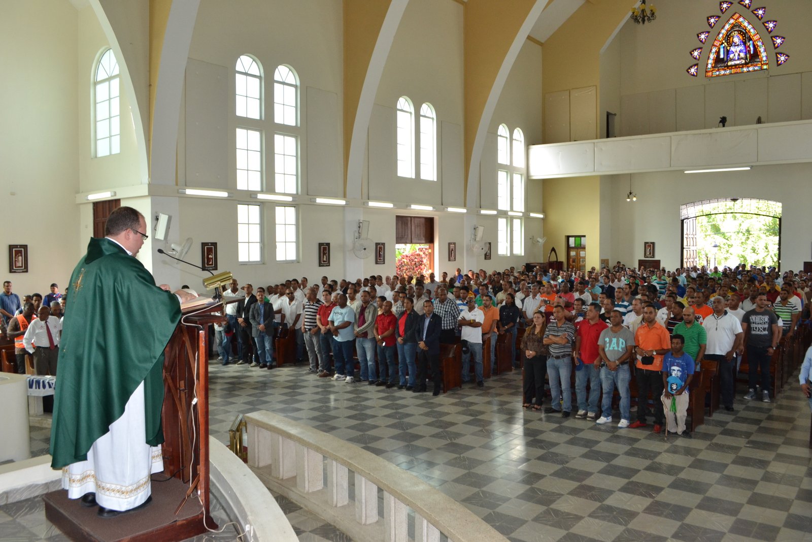El acto religioso fue oficiado por el padre Carlos Santana a las 10:00 de la mañana y en el mismo participaron choferes pertenecientes a las rutas N, H, L, SP, HV, PC, PA, G, HV, CA, U, P y G, además de los autobuses escolares, taxistas y motoconchistas. Por igual, miembros del volante que diariamente viajan hacia y desde las comunidades de Sabana Iglesia, Tamboril, Yásica, Baitoa, Villa González y Pedro García.