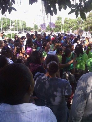 Hoy Noticias/Santo Domingo, R.D.- Cientos de maestros protestan frente al Congreso Nacional en reclamo de un aumento salarial de 60 por ciento.