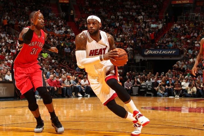 HOY NOTICIAS/MIAMI — LeBron James anotó 32 puntos, Chris Bosh agregó 18 y el Miami Heat se apoderó de la punta en la Conferencia del Este al doblegar el lunes 98-83 a los Toronto Raptors.