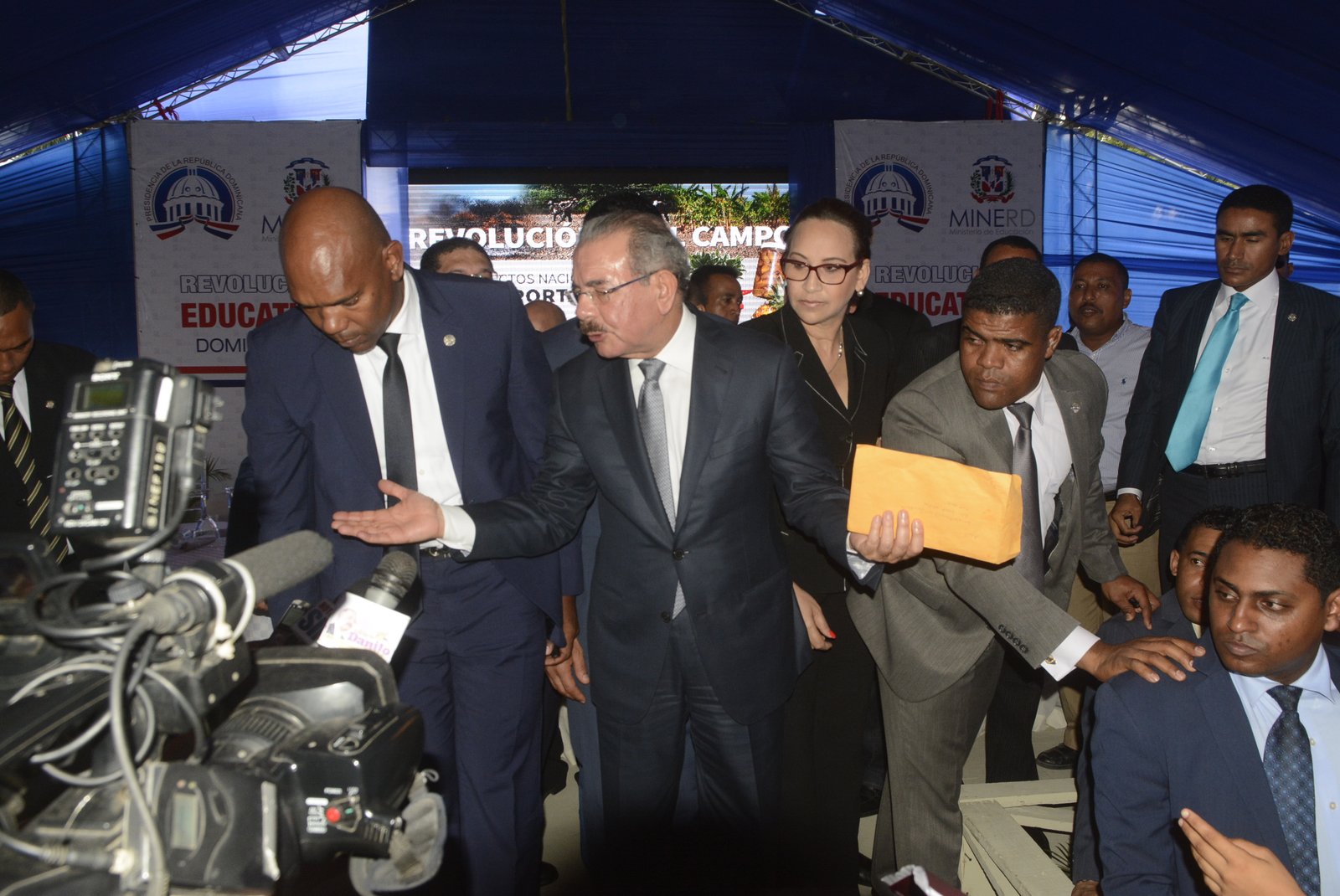 Luego de terminar el acto de inauguración de las escuelas César Hermógenes Vásquez Grullón y Carlos Diaz de este municipio, a un costo de 64 millones de pesos, el jefe del Estado fue abordado sobre el tema.