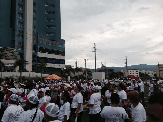 Al llegar al parqueo del HOMS los caminantes fueron recibidos con la música de DJ Martin y la animación de Fanny Ramírez, también coordinadora del equipo del voluntariado.