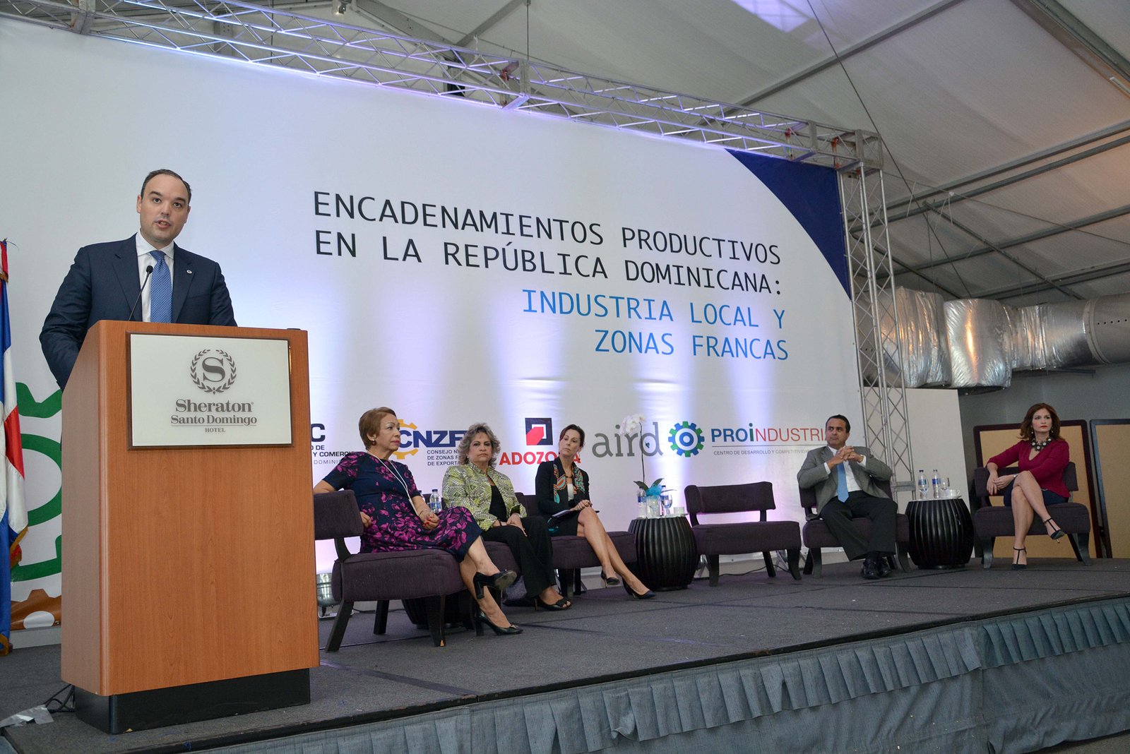 Así lo anunció el ministro de Industria y Comercio, José Del Castillo Saviñón, en el inicio del Seminario de Encadenamientos Productivos, que además coordinan la Asociación de Industrias de la República Dominicana (AIRD), la Asociación Dominicana de Zonas Francas (ADOZONA), el Consejo Nacional de Zonas Francas y el Centro de Desarrollo y Competitividad Industrial (PROINDUSTRIA).